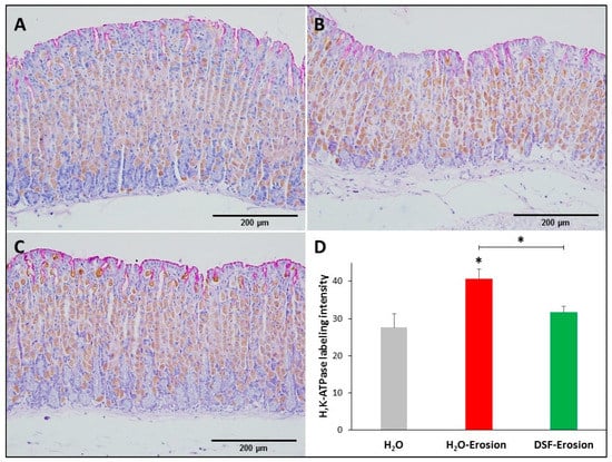 3.1.3. DSF-Pretreatment Restores Normal Level of H+,K+-ATPase in Parietal Cells