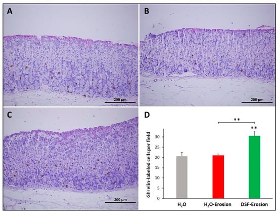 3.1.6. DSF Pretreatment Increases Ghrelin-Secreting Enteroendocrine Cells