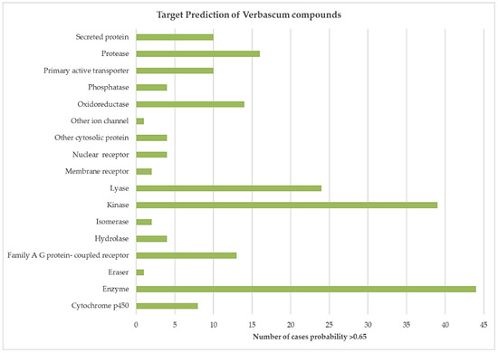 3.2. In Silico Modelling of Verbascum spp. Chemical Constituents’ Affinities by Human Molecular Targets