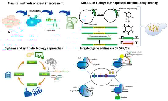 Classical metabolic engineering methods were based on random modifications through different mutagens such as UV and certain mutagenic chemicals, followed by screening the modified strains for overproduction. Molecular biology techniques such as recombinant DNA technology rely on restriction enzymes and different cloning methods to enhance strains for the overproduction of a particular molecule. Targeted gene-editing technologies such as different CRISPR–Cas proteins with various functions have made the process of targeted gene editing fast, efficient, and cost-effective. The CRISPR-Cas tool kit has been expanding ever since its discovery. Modifications such as the fusion of Cas proteins with other effector domains and abolishing the activity of the catalytic domain of Cas proteins are also being applied to achieve desired metabolic engineering goals. System and synthetic biology have been used to create genome-scale metabolic models and predict and construct indigenous and novel/non-natural pathways.