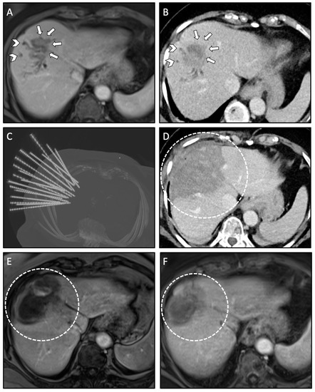 - Schullian, P.; Johnston, E.; Laimer, G.; Putzer, D.; Eberle, G.; Westerlund, P.; Henninger, B.; Bale, R. Thermal ablation of CT invisible liver tumors using MRI fusion: A case control study. Int. J. Hyperth. 2020, 37, 564–572. [Google Scholar] [CrossRef] [PubMed]