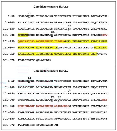 3.3. Mapping PTM on UniProt Sequences of macroH2A1.1 and macroH2A1.2: Structural and Functional Considerations