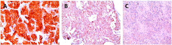 Positive (A), weakly positive (B), and negative (C) stains for SDHB.