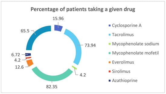 All the demographical data concerning patients are presented in Table 1. and Table 2. The data concerning percentage of renal-transplant recipients receiving following drugs in multidrug regimens is presented in Figure 1.