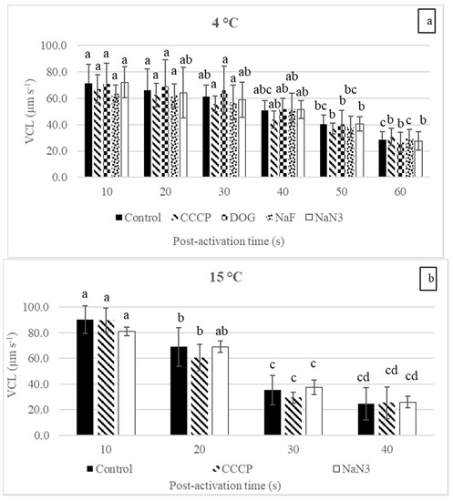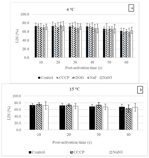 4.1. Influences of the Inhibitors and Uncoupler on Sperm Motility at Spawning Temperature