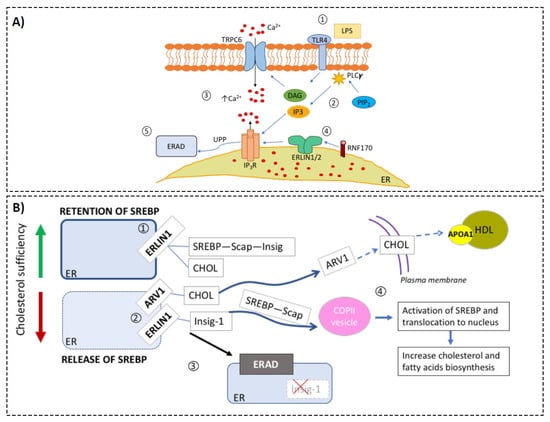 - Huber, M.D.; Vesely, P.W.; Datta, K.; Gerace, L. Erlins restrict SREBP activation in the ER and regulate cellular cholesterol homeostasis. J. Cell Biol. 2013, 203, 427–436. [Google Scholar] [CrossRef] [PubMed]