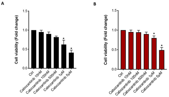 - Yakes, F.M.; Chen, J.; Tan, J.; Yamaguchi, K.; Shi, Y.; Yu, P.; Qian, F.; Chu, F.; Bentzien, F.; Cancilla, B.; et al. Cabozantinib (XL184), a novel MET and VEGFR2 inhibitor, simultaneously suppresses metastasis, angiogenesis, and tumor growth. Mol. Cancer Ther. 2011, 10, 2298–2308. [Google Scholar] [CrossRef] [Green Version]