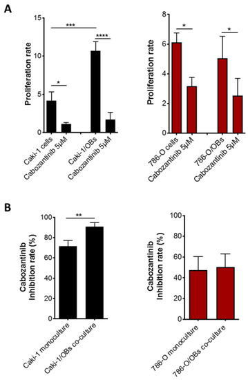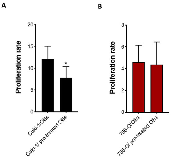 3.1. Effect of Osteoblasts on Metastatic RCC Cell Proliferation