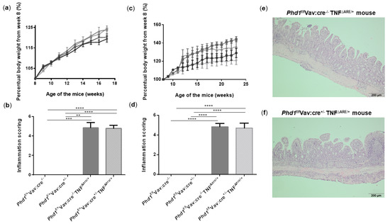 ) and Phd1f/+Vav:cre−/− TNF∆ARE/+ mice (