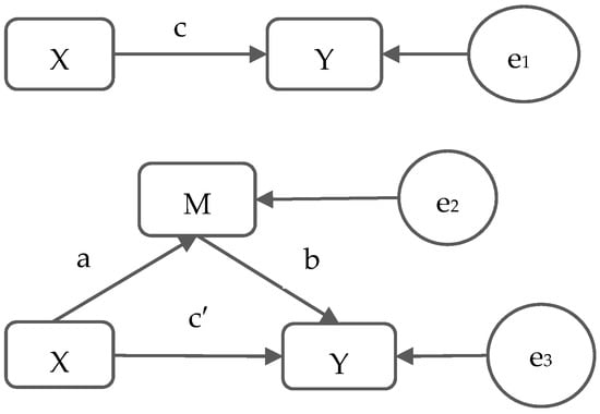 SPSS for Windows (version 20.0, SPSS Inc., Chicago, IL, USA) was used for statistical analysis. The basic characteristics of the participants were described with median (interquartile ranges, IQR), including age, height, weight, BMI, fat mass, skeletal muscle mass, BF (%), hsCRP, TNF-a, and APN. For the continuous variables Mann–Whitney U tests were performed for between-group comparisons. We conducted chi-square tests to compare the categorical variables. The mediating effects of serum hsCRP, TNF-α or APN on the relationship between body fat percentage and FLD were analyzed by SPSS mediating analysis procedures provided by Andrew F. Hayes (http://www.afhayes.com/, accessed on 23 May 2015) []. The proposed mediator (M), independent variable (X) and dependent variable (Y) were standardized to make comparisons. The process of mediation effect analysis was developed according to the mediation theory of Baron R.M. and Kenny D.A. []. Firstly, we used logistic regression analysis to test the total effect (c) of the independent variable X on the dependent variable Y, and then tested the effect (a) of X on the potential mediator M. Subsequently, the effect of M on Y after controlling X (b) and the effect of X and Y after controlling M (c′) were analyzed. If the three coefficients (a, b and c) were statistically significant, then we calculated the product of a and b (indirect effect, a × b) as the mediating effect of M, and performed the Sobel test to test the statistical significance of mediating effect (a × b). The ratio or proportion of mediation effect is the percentage of potential mediation effect in the total effect (a × b/c). The statistical model of mediation analysis is shown in Figure 3. Additionally, we conducted the mediation analysis with further adjustment of skeletal muscle mass as the sensitivity analysis.