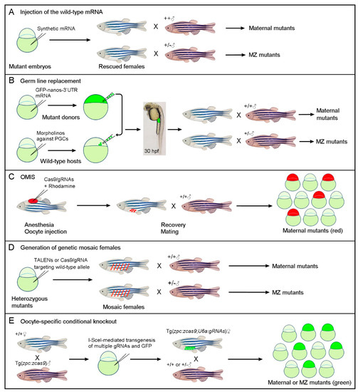 2. Strategies to Generate Maternal Mutants for Zygotic Lethal Genes in Zebrafish