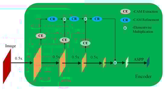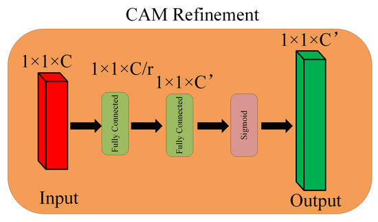 where in is the concatenated CAMs, means concatenation operation, and stands for global maximum pooling and global average pooling, respectively. refined by CAM refinement module to produce in , which refers to refined CAM here. is the number of channel map in feature level . The detailed architecture of the refinement module can be seen in Figure 5.