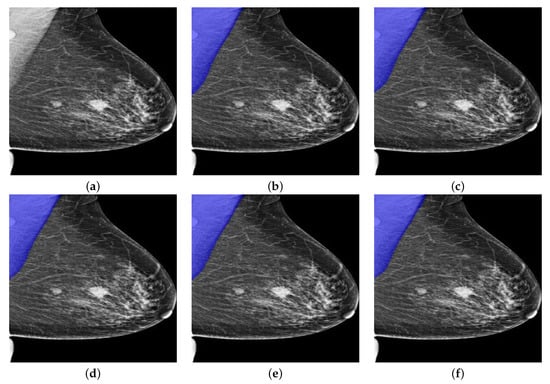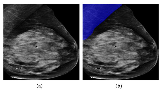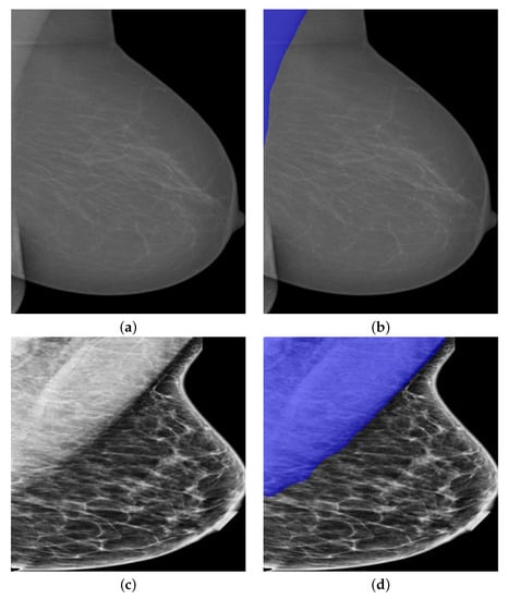 - Wang, K.; Khan, N.; Chan, A.; Dunne, J.; Highnam, R. Deep Learning for Breast Region and Pectoral Muscle Segmentation in Digital Mammography. In Pacific-Rim Symposium on Image and Video Technology; Springer: Berlin, Germany, 2019; pp. 78–91. [Google Scholar]