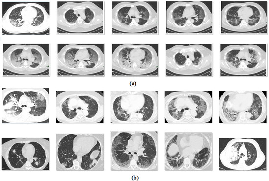 (a) COVID, (b) non-COVID: sample images.