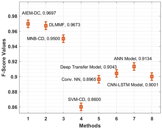 F-score analysis of the AIEM-DC model with existing approaches.