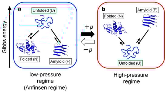 - Niraula, T.N.; Konno, T.; Li, H.; Yamada, H.; Akasaka, K.; Tachibana, H. Pressure-dissociable reversible assembly of naturally denatured lysozyme is a precursor for amyloid fibrils. Proc. Natl. Acad. Sci. USA 2004, 101, 4089–4093. [Google Scholar] [CrossRef] [Green Version]