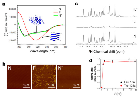- Sasaki, K.; Nakatsuka, K.; Hayashi, I.; Akasaka, K. Efficient conversion of intact hen lysozyme into amyloid fibrils by seeding. J. Biol. Macromol. 2008, 8, 11–18. [Google Scholar]