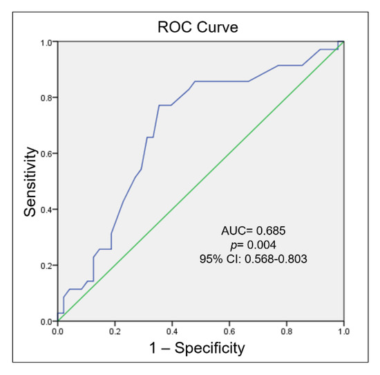 Then, we performed a ROC curve analysis to the discriminatory value of the methylation levels of the TBX5 gene in patients with septal defects when comparing to the control group; the result showed an AUC of 0.685 (95% CI = 0.568–0.803; p = 0.004) (Figure 4).