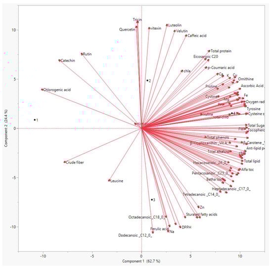 For all of the obtained results, principal component analysis (PCA) was used to summarize the differences between the three priming methods on linseed sprouts (Figure 4).