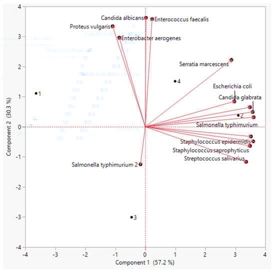 Principal component analysis of the antimicrobial activity of the linseed sprouts.