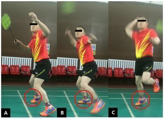Badminton is one of the most popular sports in the world, and there are over 200 million participants playing at recreational and elite levels [1]. To attain performance proficiency, the players require a high level of technical skills, equipment, tactics and rapid footwork, including lunging, braking, turning, jumping and landing during game plays [2,3]. Efficient footwork allows participants to reach a shuttlecock at the best position quickly and to maintain good body balance for upper limb racket performance [4,5,6,7,8].