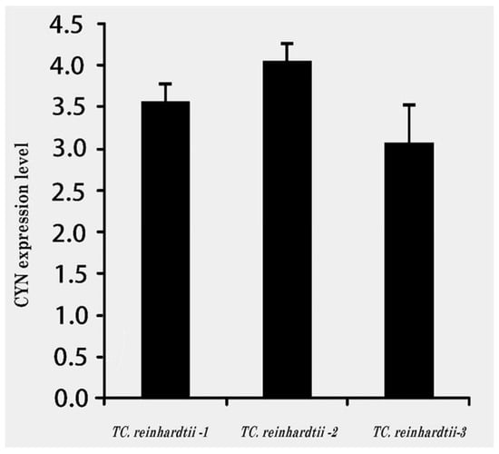 3.4. Quantitative Real-Time PCR Analysis for the Expression of CYN Genes in Three Transgenic C. reinhardtii
