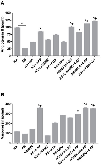 3.7. AP Increases Angiotensin II and Vasopressin Plasma Levels in the Rat AS Model
