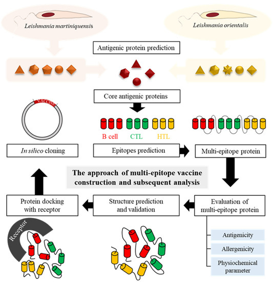 Multi-epitope vaccines targeting conserved or common antigens are desirable for vaccines against parasitic diseases caused by multiple species of Leishmania. Immuno-informatic approaches were used in the designing of multi-epitope vaccines against pathogens such as human immunodeficiency virus (HIV), Vibrio cholerae, and Staphylococcus aureus [18,19,20]. In Leishmania, the design of multi-epitope vaccines targeting a single species was reported [21,22,23]. A higher induction of the immune response and protection was observed in antigens with multiple epitopes compared to mixed recombinant proteins [24]. Similar approaches may be used to develop vaccines effective against diverse strains or among closely related species.