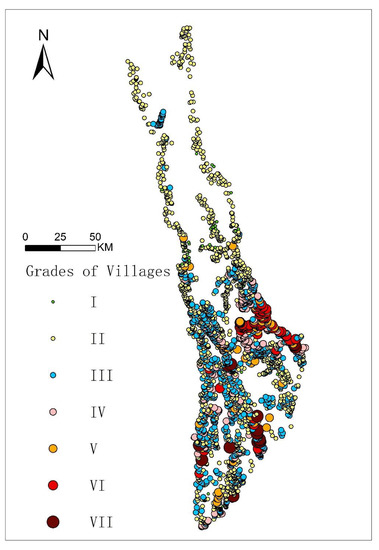 Distribution of villages and their grades in Northwest Yunnan.