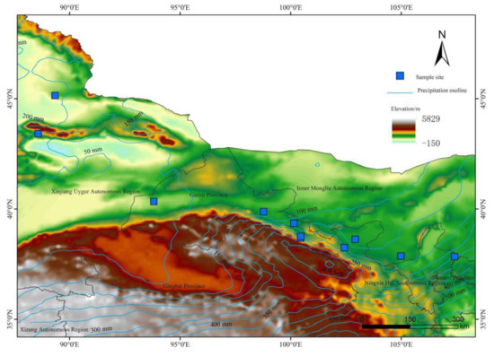 Frequent drought, scanty precipitation, and high evapotranspiration are typical climatic characteristics of arid and semi-arid regions of China. This resource-scarce situation makes these regions more ecologically fragile in light of present global changes [14]. The study of vegetation response characteristics to climate has become the basic guiding work in the reconstruction of the ecological environment [15]. In this study, a large number of root samples of Zygophyllaceae plants were obtained along the precipitation gradient of the arid and semi-arid regions of China (Hexi Corridor–Jungar Basin).