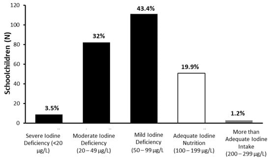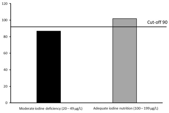 - WHO. Urinary Iodine Concentrations for Determining Iodine Status Deficiency in Populations. Vitamin and Mineral Nutrition Information System; World Health Organization: Geneva, Switzerland, 2013. Available online: https://www.who.int/publications/i/item/WHO-NMH-NHD-EPG-13.1 (accessed on 11 July 2021).