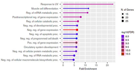 miRNAs can be considered the most well-studied class of non-coding RNAs [,]. They have an average length of 22 nucleotides, and they are important players in the regulation of gene expression. They usually function post-transcriptionally, as they interact with the 3′ untranslated (UTR) region of target mRNAs, affecting their stability and leading to translational repression []. Studies show that they can affect the expression of hundreds of target genes through their interactions [,].