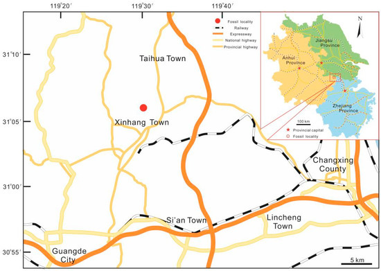 Map showing the fossil locality of Sublepidodendron grabaui in this study.