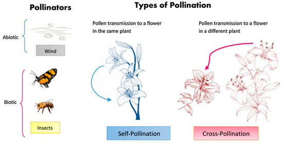 - Abiotic pollination can occur in abiotic conditions, such as self-pollination and wind diffusion as local pollination.