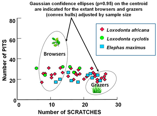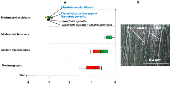 - Zhang, H.; Wang, Y.; Janis, C.M.; Goodall, R.H.; Purnell, M.A. An examination of feeding ecology in Pleistocene proboscideans from southern China (Sinomastodon, Stegodon, Elephas), by means of dental microwear texture analysis. Quat. Int. 2017, 445, 60–70. [Google Scholar] [CrossRef]