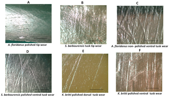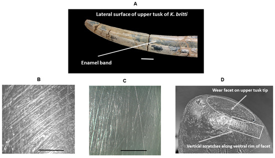 | Species | Locality | Number of Upper Tusks | Scratches Mostly Perpendicular to Enamel Band | Scratches Mostly Parallel to the Enamel Band | Tip Wear |