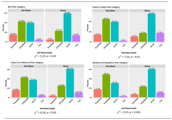 Body composition risk categories and self-rated health. Note: Chi square analyses based on dichotomizing Self Rated Health as Excellent/Very Good vs. Good/Fair.