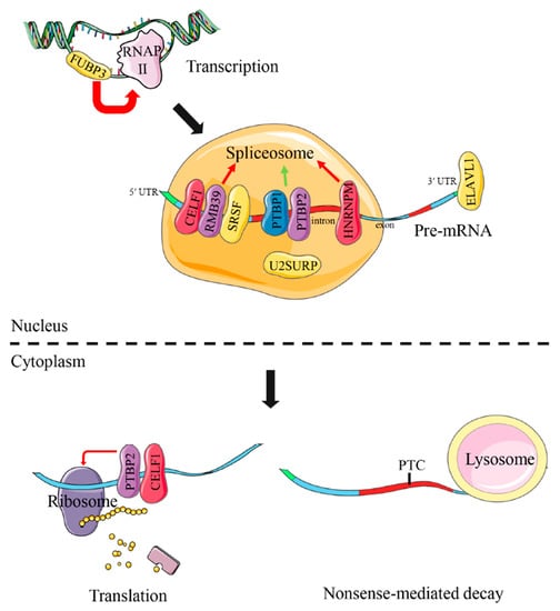 - Ladd, A.N.; Charlet, N.; Cooper, T.A. The CELF family of RNA binding proteins is implicated in cell-specific and developmentally regulated alternative splicing. Mol. Cell. Biol. 2001, 21, 1285–1296. [Google Scholar] [CrossRef]