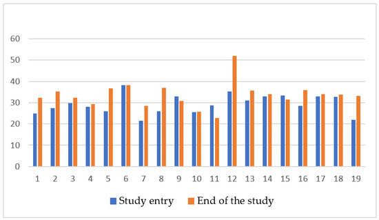 Cardiac T2* (ms) in 19 patients prior and after 12 months of DFX FCT administration.