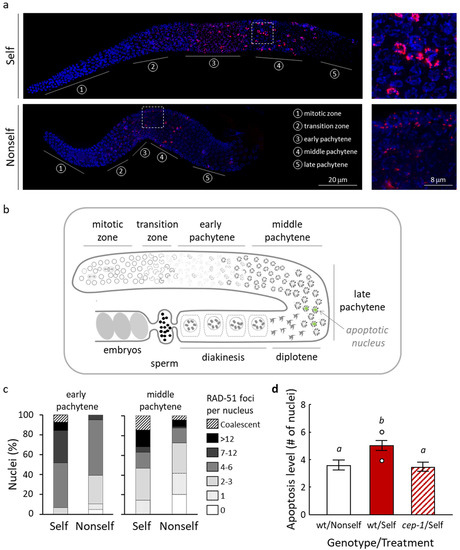 - Germoglio, M.; Adamo, A. A Role in Apoptosis Regulation for the rad-51 Gene of Caenorhabditis elegans. Genetics 2018, 209, 1017–1028. [Google Scholar] [CrossRef] [PubMed]