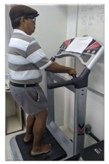 Multicomponent training should include cardiorespiratory and aerobic endurance; strength and flexibility; balance and body stability [], flexibility not being mandatory as an MCT adequacy. Training should last 45 min, with 10 min warm-up, 30 min of the circuit, and 5 min of cool down [,]. It will consist of three stations: 1. cardiorespiratory and aerobic resistance; 2. strength, endurance, and flexibility; and 3. balance and body stability. The multicomponent stations will be distributed progressively as follows: (I) First station: free walking exercises will be performed on a treadmill; (II) second station: strengthening of upper and lower limbs with load progression will be performed; trunk and abdominal training and exercises in diagonal movements of the upper limbs; (III) third station: balance progression exercises will be performed, evolving different supports in orthostatic position (bilateral or unilateral), with a change of base and support surface (with and without eye-opening; in soil and foam) and balance training with a circuit.