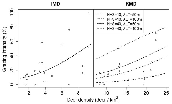 - Akashi, N. Browsing damage by sika deer on trees in young plantations and its relation to relative deer density indices in Hokkaido, Japan. J. Jpn. For. Soc. 2009, 91, 178–183, (In Japanese with English Abstract). [Google Scholar] [CrossRef] [Green Version]