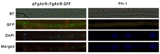3.7. FgAtrR Mainly Localizes to the Nucleus