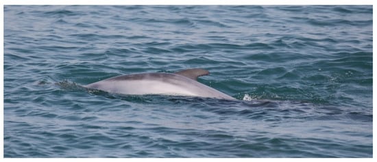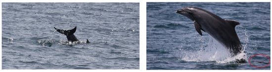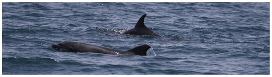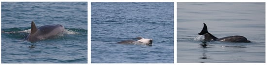 The area is well recognized for the presence of bottlenose dolphins [23], with the regular observation of mother-calf pairs and foraging behavior, thus appearing a suitable calving and feeding ground for the species [20,21]. To date, 347 unique individuals have been photo identified in the area, showing different patterns of site fidelity [21]. A resident group of 42 individuals with low dispersion level has been identified, half of which are classified as females [21]. The remaining animals have been classified as part-time residents (n = 73), and transients (n = 232), showing lower levels of site fidelity and moving in and out of the study area [21]. No information is currently available on males, as the dolphins’ genital area was observed only occasionally, not allowing us to use this criterion to classify individuals as putative males.