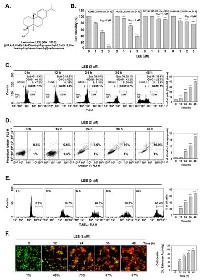 3.1. LEE-Promoted Cell Death through Causing Apoptosis
