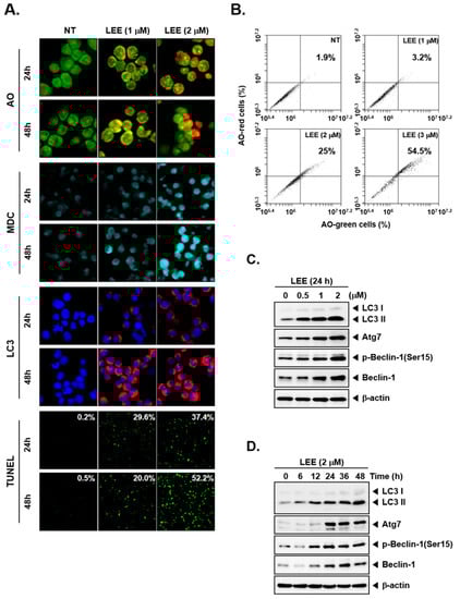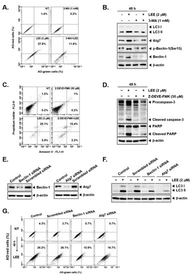 3.4. LEE-Induced Cell Death through Autophagy and Apoptosis Even in the Presence of Different Pharmacological Inhibitors