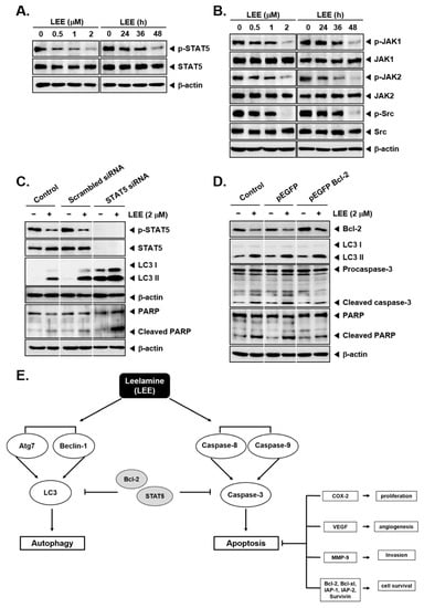 3.5. LEE-Induced Autophagy and Apoptosis via Driving STAT5 Inhibition