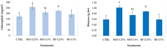 | WD 0.25% | 15 ± 0.8 b | 0.23 ± 0.03 a | 3.49 ± 0.67 c | 3.47 ± 0.62 c | 9.0 ± 0.3 a | 7.16 ± 1.67 c |