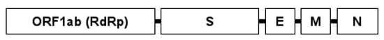 The genome of a coronavirus ranges from 26 to 32 kb in length [5], each of them coding for two non-structural and four structural proteins. The non-structural proteins are coded in ORF1ab, which contains the RNA-dependent RNA polymerase gene (RdRp). The structural genes include spike (S), envelope (E), membrane (M), and nucleocapsid (N). The S gene region encodes the spike protein, which is responsible for attaching the virus to receptors on the host cell membrane.