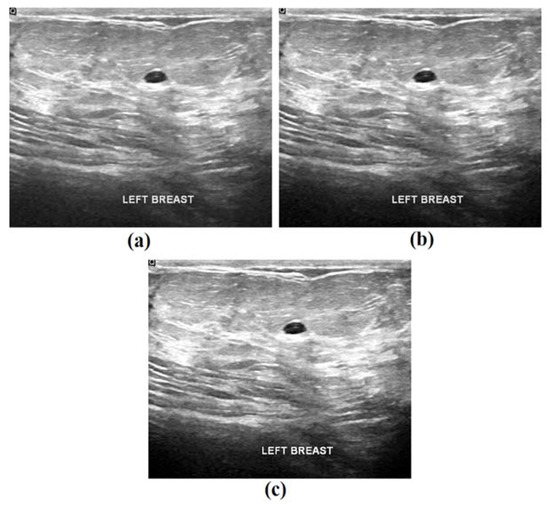 Breast cancer is one of the most common cancers reported amongst women and is a primary contributor to cancer-related deaths around the world. Early diagnoses of breast cancer can enhance the patient’s quality of life and also increase their survival rate. Further, the mortality rate of the affected patients can also be reduced [1]. The ultrasonography technique is commonly employed in the diagnosis of breast cancer due to its convenience, painless operation and efficient real-time performance [2]. However, the ultrasonic instruments possess high sensitivity, which makes the tissues of the environment in the human body vulnerable. This also results in a massive amount of speckle noise that interferes with doctors’ diagnoses [3]. At present, ultrasound methods are preferred in the diagnosis of breast cancer based on medical expertise. To be specific, ultrasound is involved in the classifications and marks of breast lesions. The ultrasound procedure can be prescribed in this following scenario: the doctor uses an ultrasound instrument to find a better angle and demonstrates the lesion clearly on the screen. Then, they keep the probe fixed for a long period of time using one hand while another hand is used to measure and mark the lesion on the screen [4,5]. In the abovementioned procedure, automatic tracking of the region of interest (lesions) and classification (malignant or benign) are in huge demand for breast lesion detection in USIs.